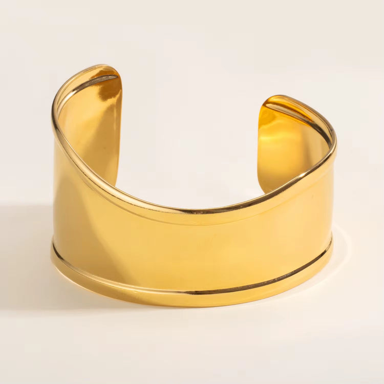 The Amla Bangle is a bold statement piece with an irregular cuff design and a sleek finish. Its modern style makes it the perfect accessory to elevate any outfit. Designed to fit all sizes, it can be easily adjusted by gently moulding the bangle to your wrist.