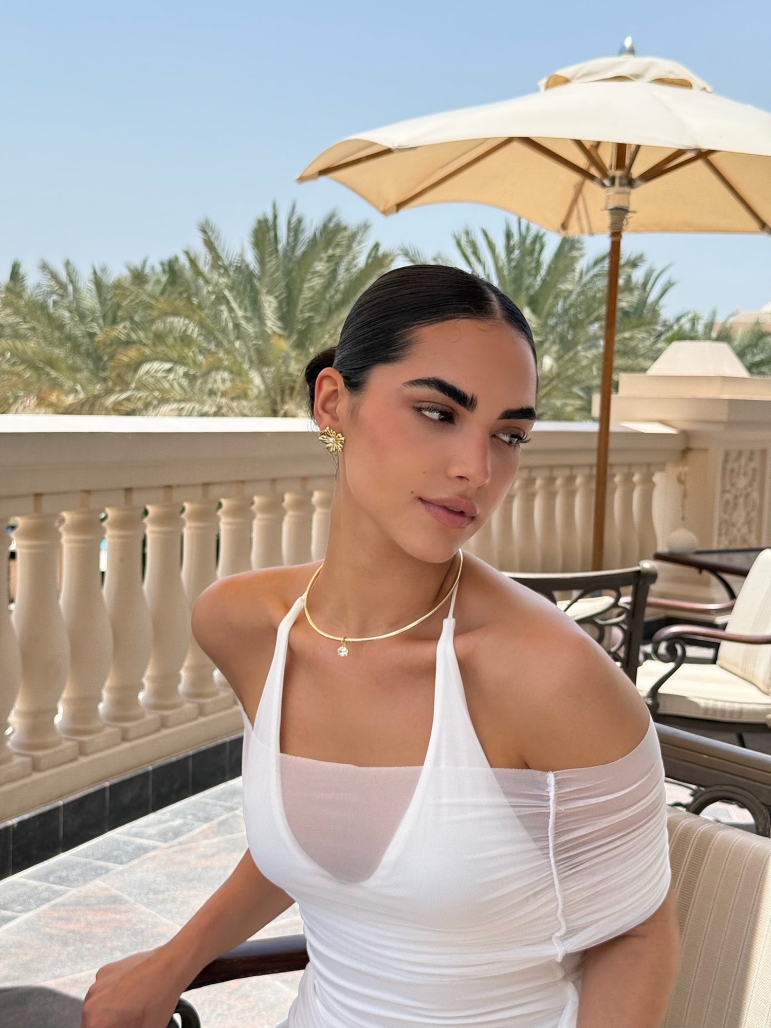 Elegant yet understated, the Margaux necklace pairs a radiant zirconia pendant with a sleek, 14k gold plated choker. Inspired by vintage luxury, reimagined for the modern muse. Sparkle that feels effortless.