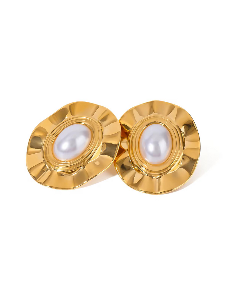The Pia Pearl Earring, features a oval fluted shape with a lustrous pearl at its center. This timeless piece brings a refined, effortless elegance to any look, whether for day-to-day wear or a special occasion.